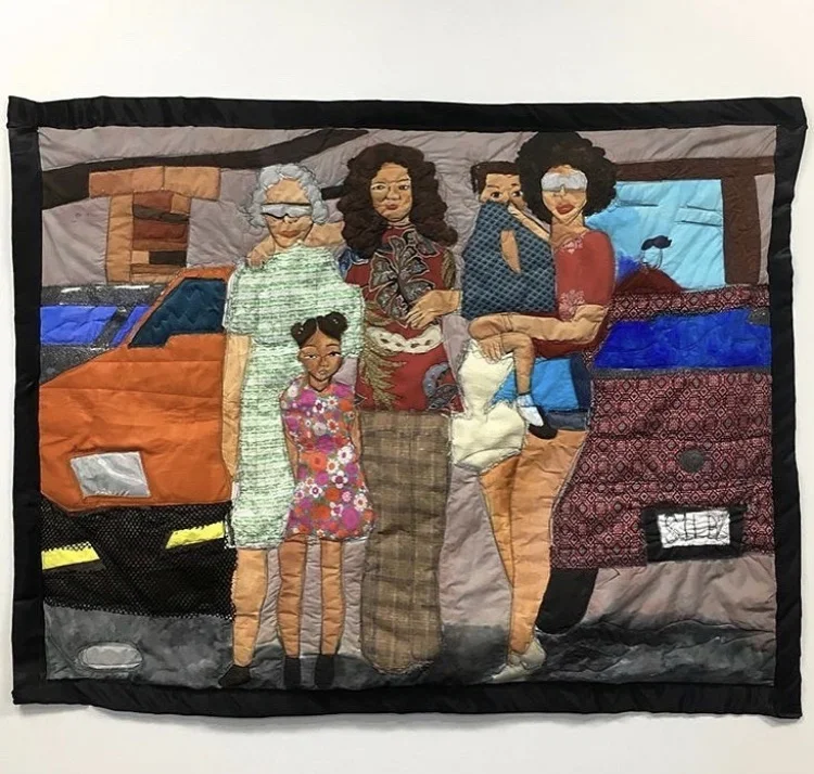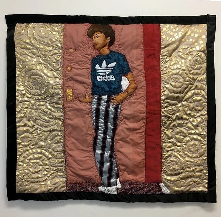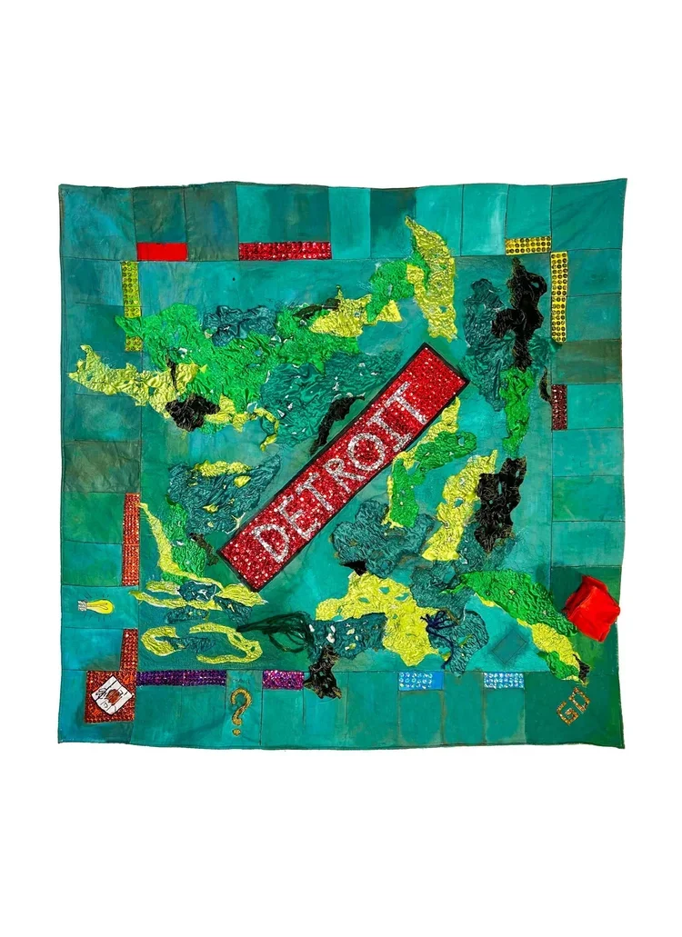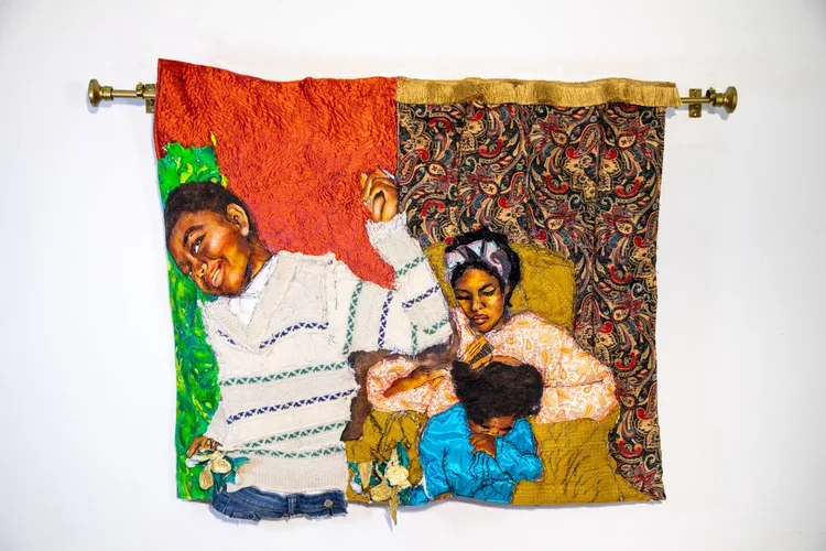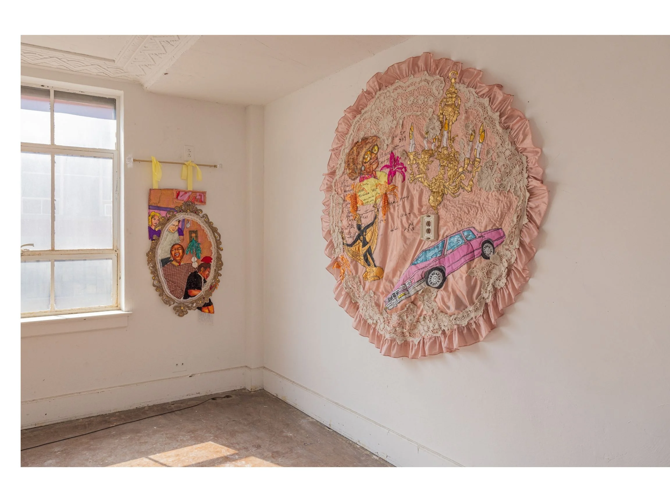 Artist and Detroit native, Taylor Childs explores the representational visual vocabulary and themes of; family, the after effects of the African Diaspora, the perception of people, consumerism, bling culture and how the Diaspora affects African Americans contemporarily. Translating this into a narrative where these themes are applied to explorations of fabric manipulation through textile tradition in order to create a dialogue representing African American life.