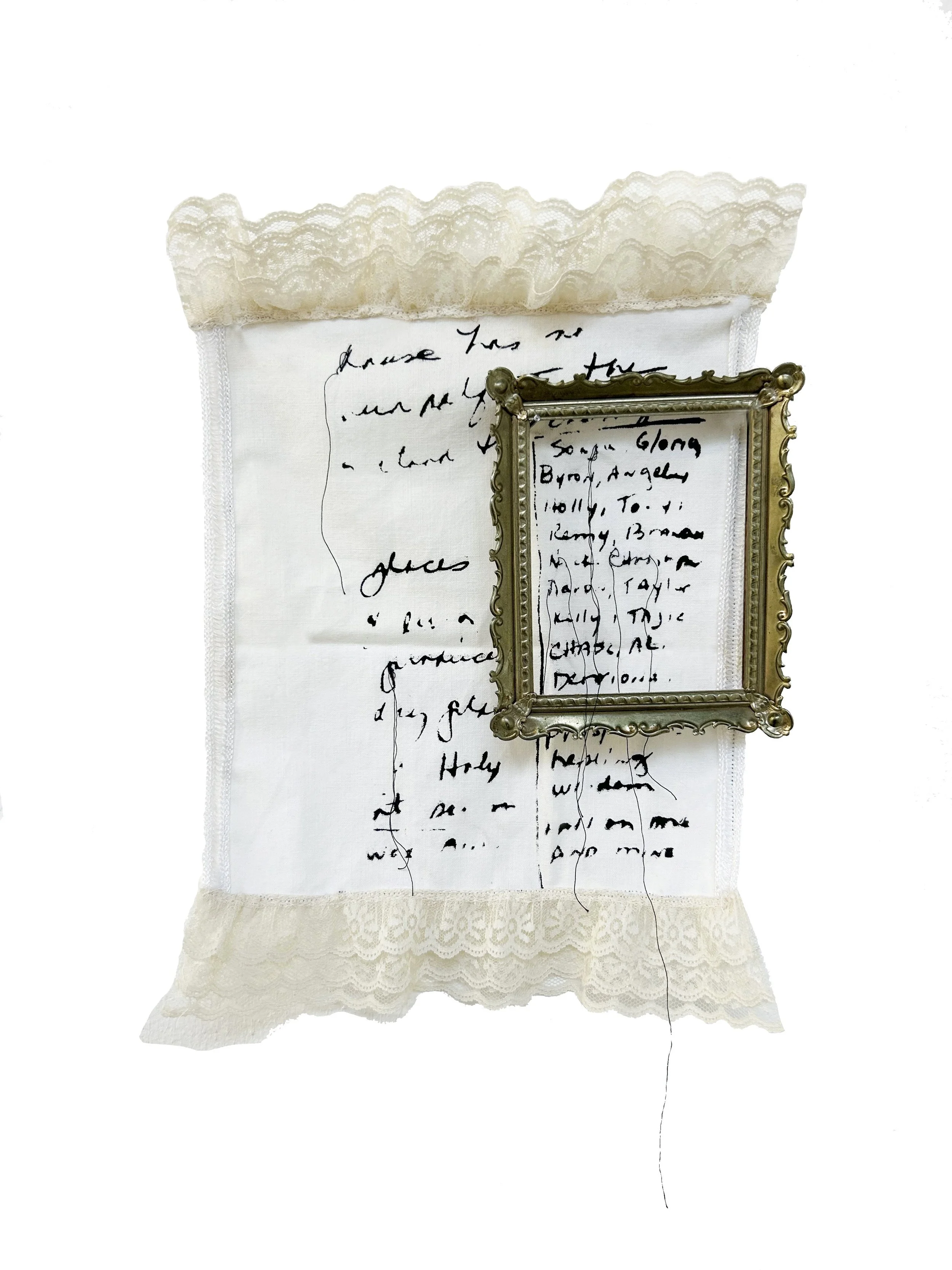 Medium: Acrylic Paint, Cotton, Lace, Assorted Vintage Fabric, Sequins..