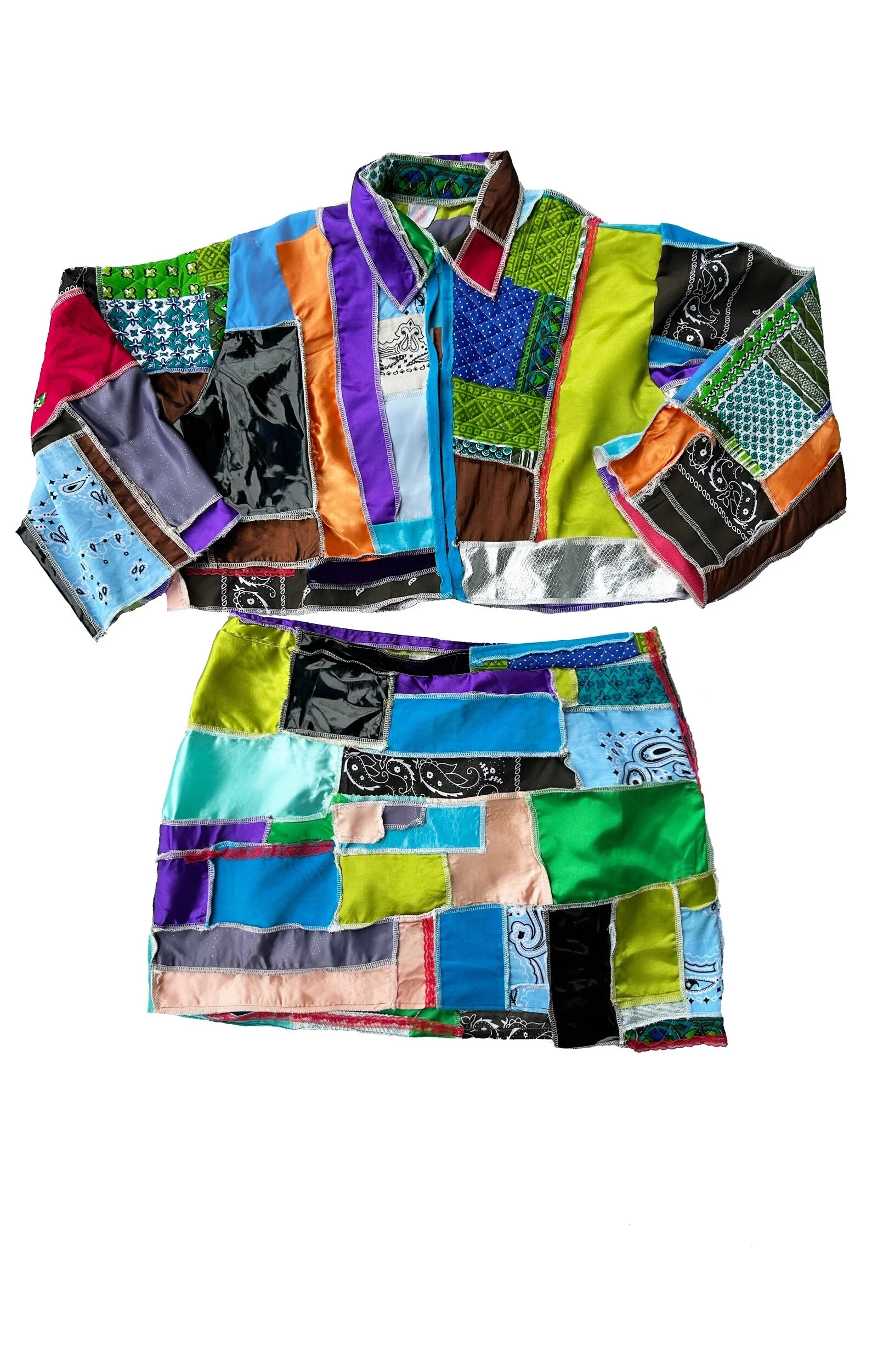 Store › Freestyle Exposed serged patchwork set Image 1 of 1 Freestyle Exposed serged patchwork set $800.00 Jacket- $500Skirt- $300Large can be customized to fit to size Polyester, Cotton, Vinyl: Green, hot pink, brown, shiny black, salmon pink, blue, purple Green, blues, purple, pinks Quantity: Add To Cart Added! Jacket- $500Skirt- $300Large can be customized to fit to size